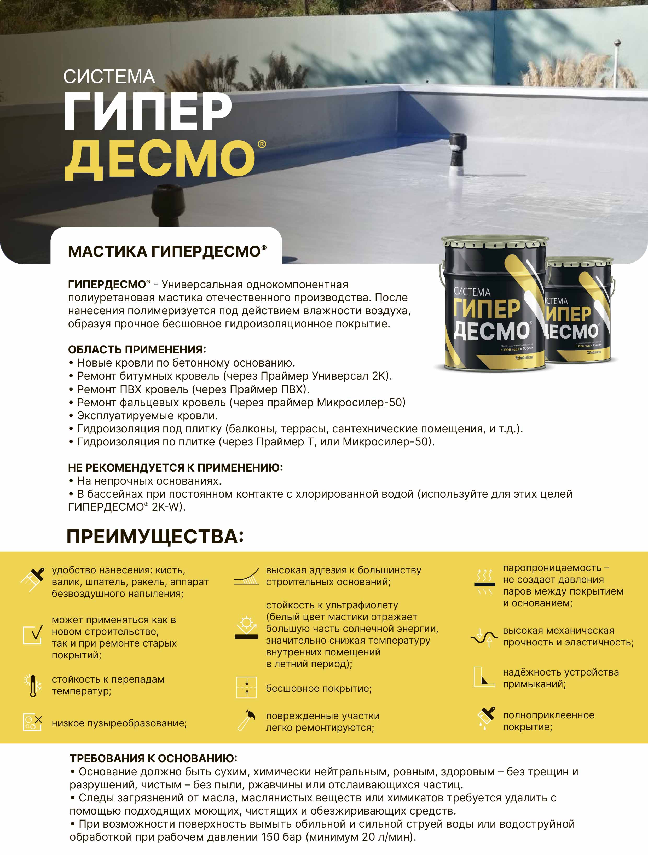 Основные свойства и преимущества мастики ГИПЕРДЕСМО